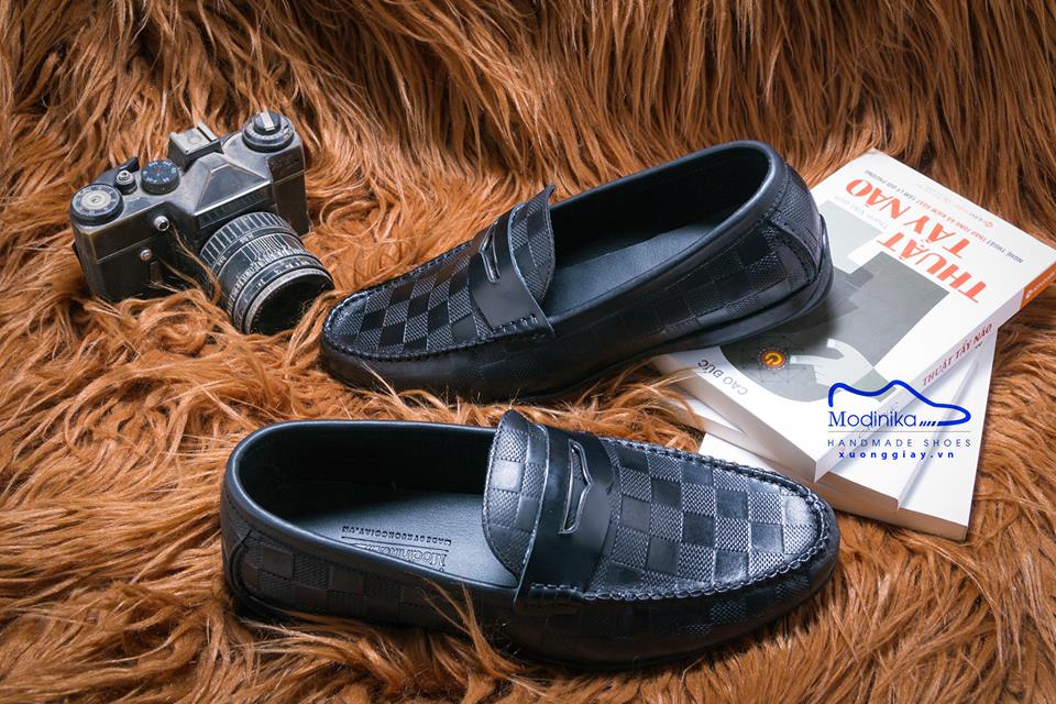 Giày Lười L046 màu đen kẻ ô vuông đẹp