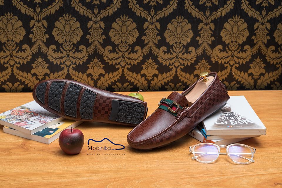 Giầy lười L042N Màu nâu kẻ ô sang trọng